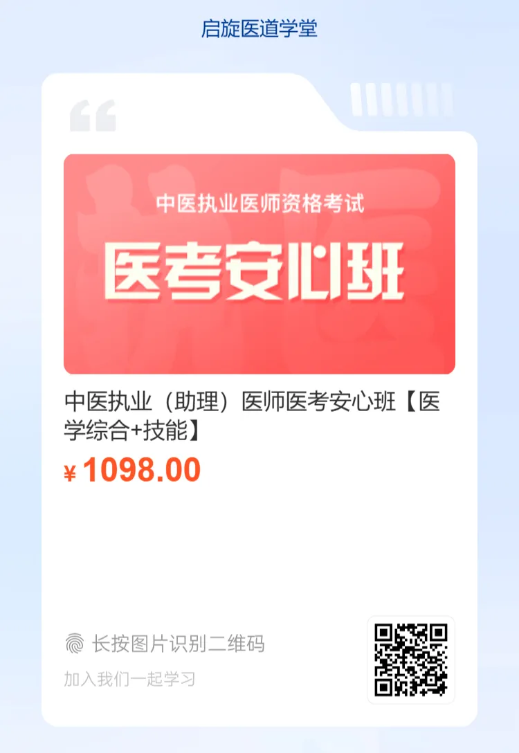 中医执业(助力)医师考不过?考点难点把握不准确?今天,我们给你推荐的课程是由启旋教育和中国中医药出版社联合推出的医考安心班,助你轻松备考,顺利过关!